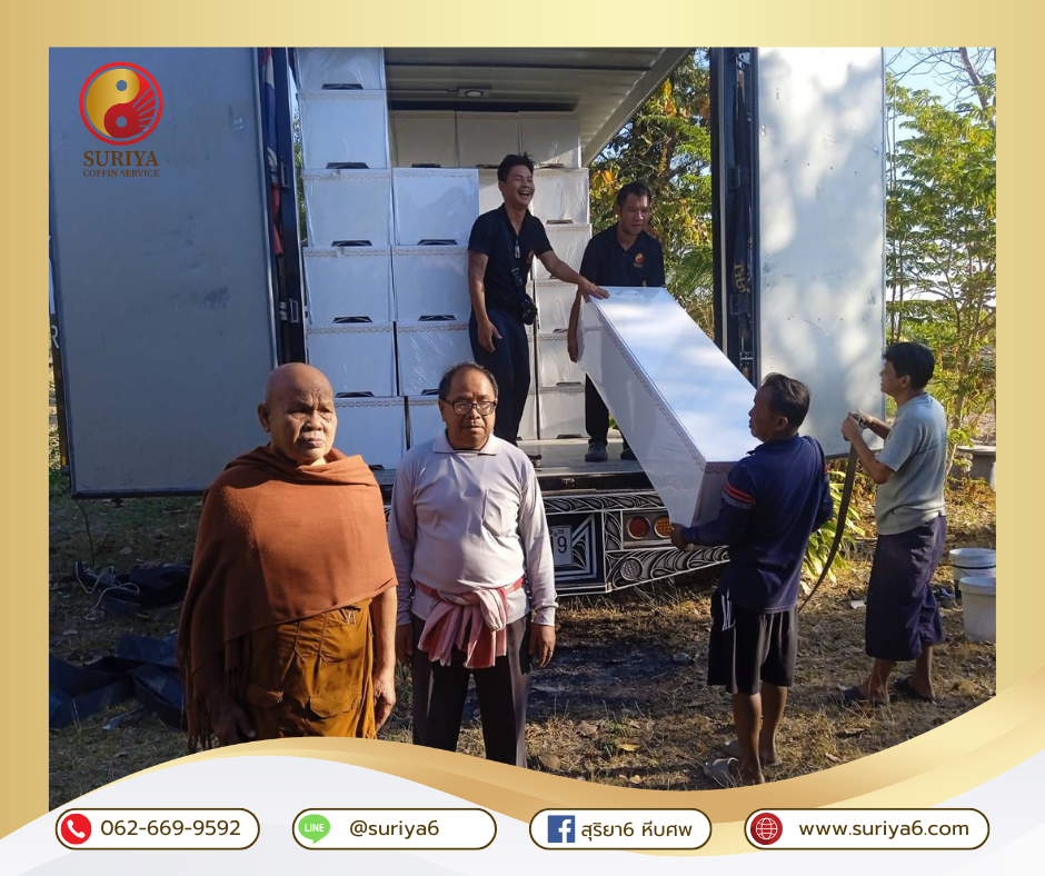 ทางสุริยา6 หีบศพ ได้นำหีบศพไปบริจาคที่ วัดแสงอรุณวนาราม ต.บ้านลาน อ.บ้านไผ่ จ.ขอนแก่น 40110 เมื่อวันที่ 13 กุมภาพันธ์ 2569 เป็นจำนวน 50 ใบ ทางสุริยา6 หีบศพได้นำบริจาคให้แก่วัดเป็นที่เรียบร้อยแล้ว ณ โอกาสนี้ทางสุริยา6 หีบศพต้องขอขอบพระคุณผู้ร่วมบริจาคทุกท่านและขออนุโมทนาบุญกุศลในครั้งนี้จงดลบันดาลให้ท่าน ครอบครัว และบุคคลอันเป็นที่รักทั้งหลาย จงมีแต่ความสุขสวัสดิ์ เจริญรุ่งเรือง ก้าวหน้าในชีวิต มีทรัพย์เหลือล้น สุขภาพร่างกายแข็งแรงปราศจาคโรคภัย อายุยืนยาว คิดจะทำการสิ่งใดก็ขอให้สมความปรารถนาทุกประการด้วยเทอญ