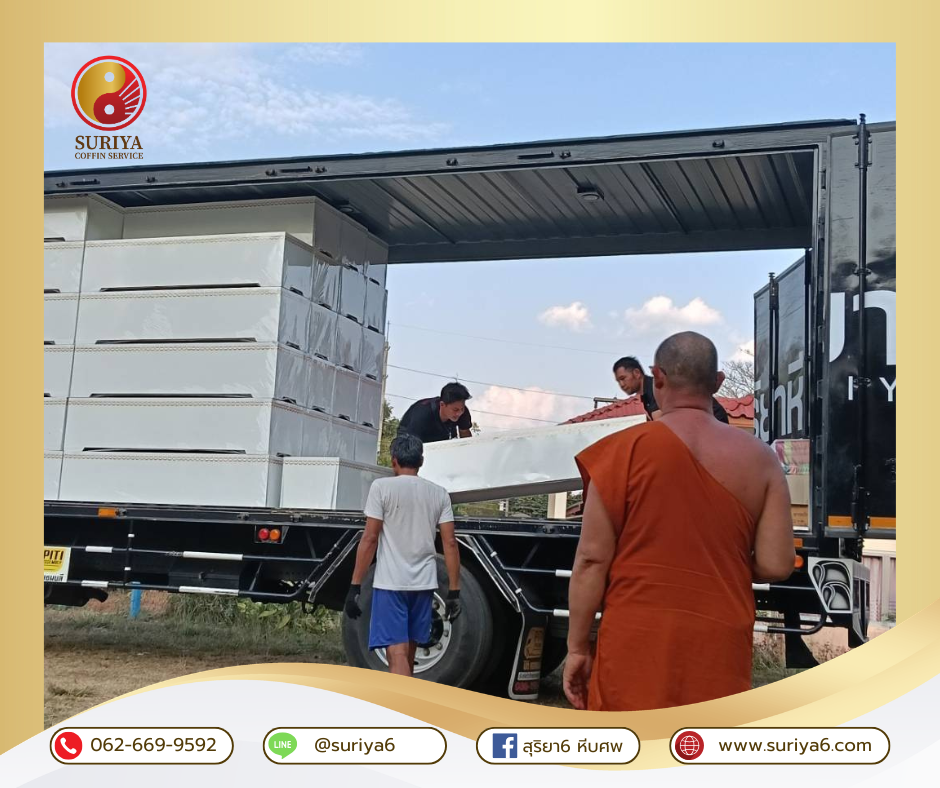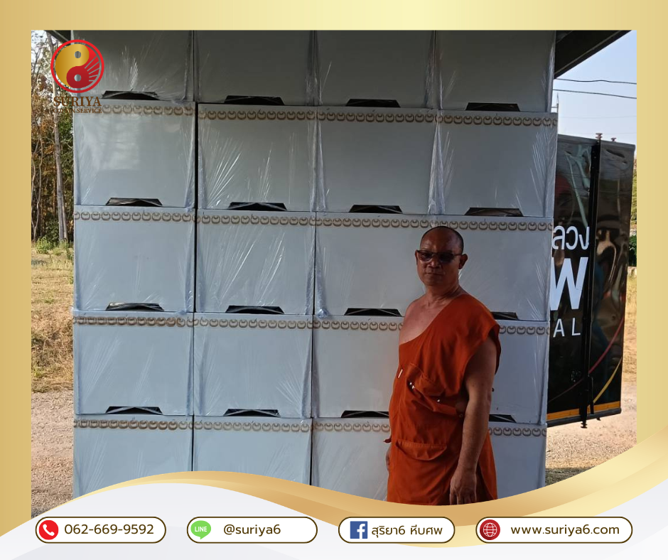 ทางสุริยา6 หีบศพ ได้นำหีบศพไปบริจาคที่ วัดสวนธรรมเทวราช ตำบลธาตุ อำเภอเชียงคาน จังหวัดเลย เมื่อวันที่ 12 กุมภาพันธ์ 2569 เป็นจำนวน 50 ใบ ทางสุริยา6 หีบศพได้นำบริจาคให้แก่วัดเป็นที่เรียบร้อยแล้ว ณ โอกาสนี้ทางสุริยา6 หีบศพต้องขอขอบพระคุณผู้ร่วมบริจาคทุกท่านและขออนุโมทนาบุญกุศลในครั้งนี้จงดลบันดาลให้ท่าน ครอบครัว และบุคคลอันเป็นที่รักทั้งหลาย จงมีแต่ความสุขสวัสดิ์ เจริญรุ่งเรือง ก้าวหน้าในชีวิต มีทรัพย์เหลือล้น สุขภาพร่างกายแข็งแรงปราศจาคโรคภัย อายุยืนยาว คิดจะทำการสิ่งใดก็ขอให้สมความปรารถนาทุกประการด้วยเทอญ
