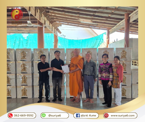ทางสุริยา6 หีบศพ ได้นำหีบศพไปบริจาคที่ วัดโสภาราม ต.สามพราน อ.ศรีสำโรง จ.สุโขทัย 64120 เมื่อวันที่ 14 กุมภาพันธ์ 2568 เป็นจำนวน 27 ใบ และขอขอบพระคุณผู้ใจบุญ "คุณบุญนิศา ติสโส และคณะ" ร่วมบริจาคโลงศพจำนวน 26 ใบ รวมทั้งสิ้นเป็นจำนวน 51 ใบ ทางสุริยา6 หีบศพได้นำบริจาคให้แก่วัดเป็นที่เรียบร้อยแล้ว ณ โอกาสนี้ทางสุริยา6 หีบศพต้องขอขอบพระคุณผู้ร่วมบริจาคทุกท่านและขออนุโมทนาบุญกุศลในครั้งนี้จงดลบันดาลให้ท่าน ครอบครัว และบุคคลอันเป็นที่รักทั้งหลาย จงมีแต่ความสุขสวัสดิ์ เจริญรุ่งเรือง ก้าวหน้าในชีวิต มีทรัพย์เหลือล้น สุขภาพร่างกายแข็งแรงปราศจาคโรคภัย อายุยืนยาว คิดจะทำการสิ่งใดก็ขอให้สมความปรารถนาทุกประการด้วยเทอญ