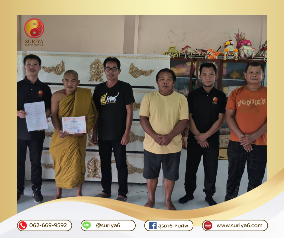 ทางสุริยา6 หีบศพ ได้นำหีบศพไปบริจาคที่ วัดแสนสุข ต.ครบุรี อ.ครบุรี จ.นครราชสีมา เมื่อวันที่ 7 กันยายน 2568 เป็นจำนวน 50 ใบ ทางสุริยา6 หีบศพได้นำบริจาคให้แก่วัดเป็นที่เรียบร้อยแล้ว ณ โอกาสนี้ทางสุริยา6 หีบศพต้องขอขอบพระคุณผู้ร่วมบริจาคทุกท่านและขออนุโมทนาบุญกุศลในครั้งนี้จงดลบันดาลให้ท่าน ครอบครัว และบุคคลอันเป็นที่รักทั้งหลาย จงมีแต่ความสุขสวัสดิ์ เจริญรุ่งเรือง ก้าวหน้าในชีวิต มีทรัพย์เหลือล้น สุขภาพร่างกายแข็งแรงปราศจาคโรคภัย อายุยืนยาว คิดจะทำการสิ่งใดก็ขอให้สมความปรารถนาทุกประการด้วยเทอญ